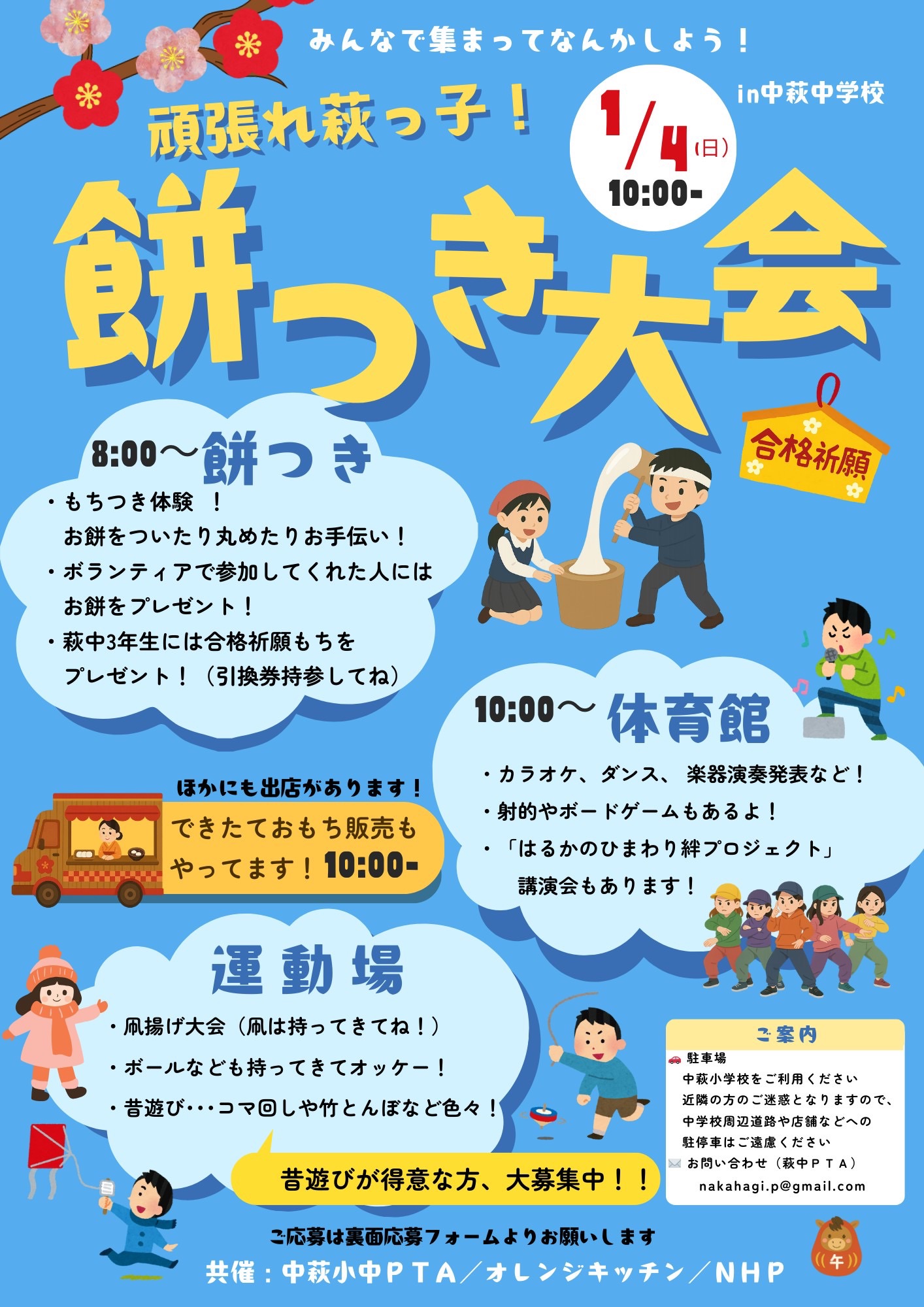 | 主催団体 | 共催:中萩小中PTA/オレンジキッチン/NHP |