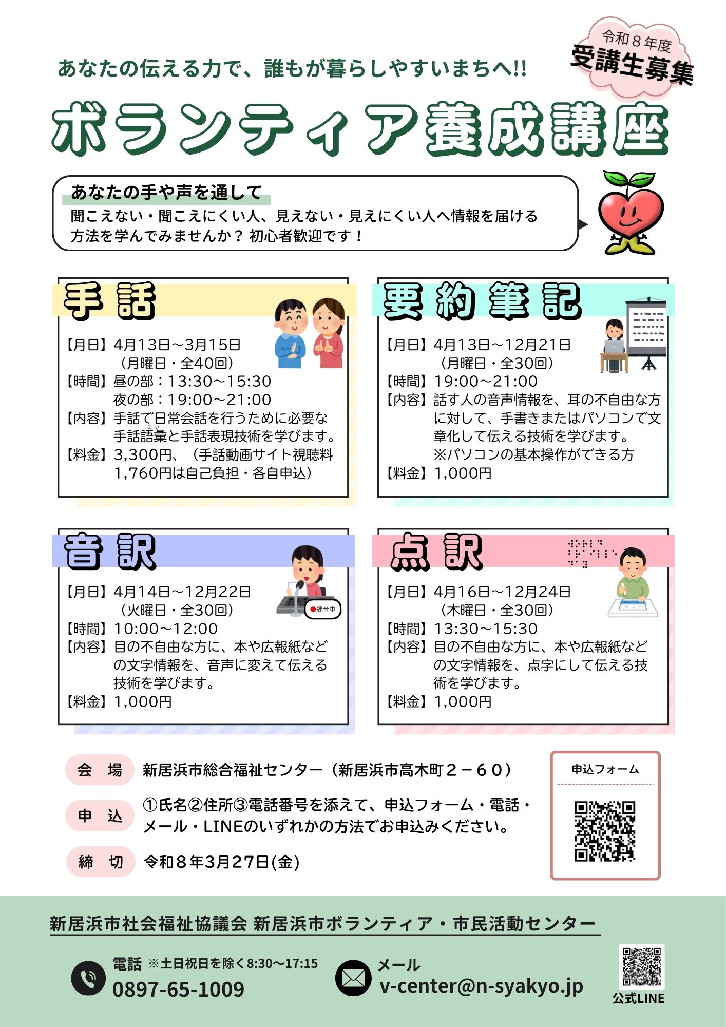 令和8年度『ボランティア養成講座』の受講生を募集します